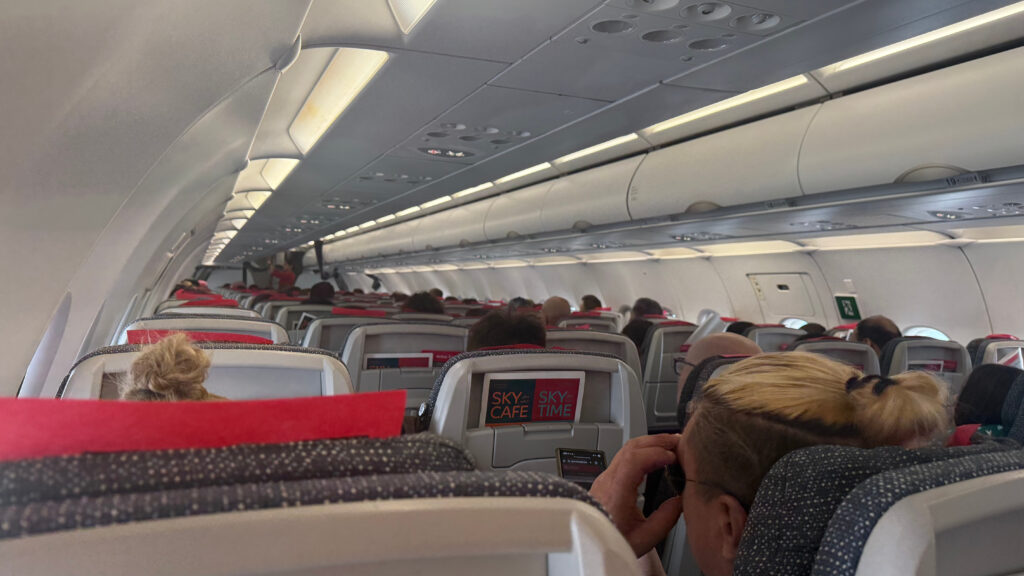 There are no screens in front of you like we’re used to from other airlines. However, you can connect from your phone to their WiFi network and it takes you to their entertainment portal. There were a few movies and some series available. It’s not Netflix, but it’s something to stare at while you pretend to ignore your seatmate’s snoring.