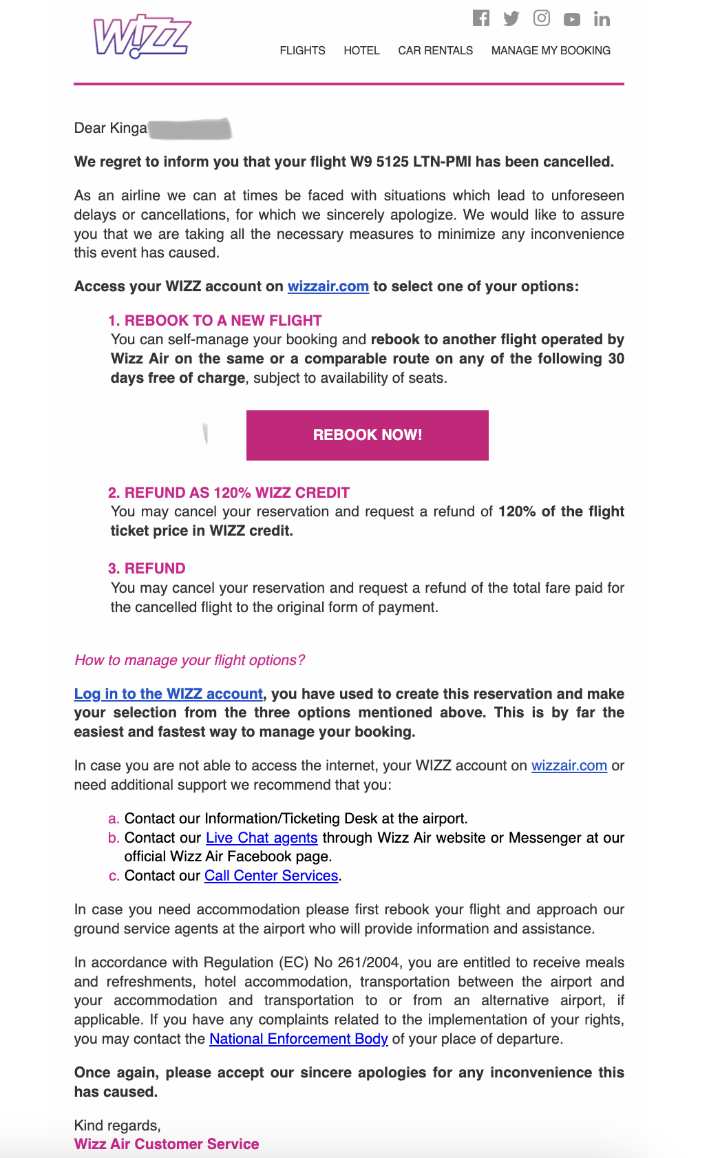 flight cancelled wizzair what to do