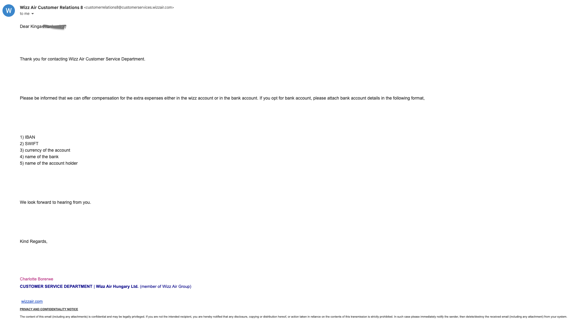 Again, this is an example from Wizz Air but all of those emails are similar