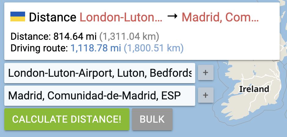• Ireland to Spain